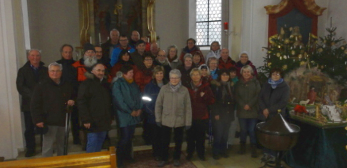 Mit einer stattlichen Anzahl von 35 Teilnehmern ging es über das Wasserauffangbecken nach Neufra. Dort wurde die St. Dionysios Kirche und die Krippe der Kirchengemeinde besichtigt. Unser Wanderführer Waldemar konnte noch einige Details zum Bau der Kirche erklären. Die Einkehr erfolgte im Gasthaus Rössle in Neufra.